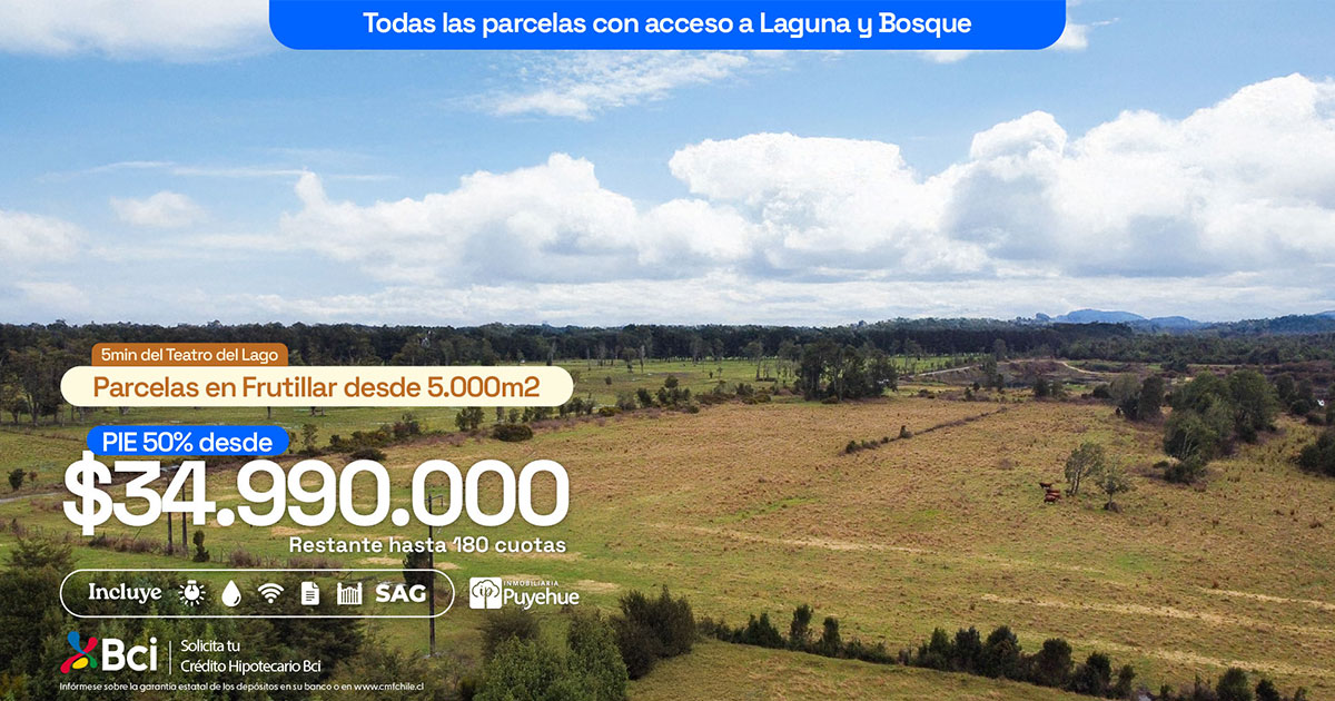 Parcelas en Frutillar a partir de 5.000m² ubicadas a 5 min. del Teatro y la Playa en Lago Llanquihue con vista al Volcan Osorno y 2 lagunas de área comun.